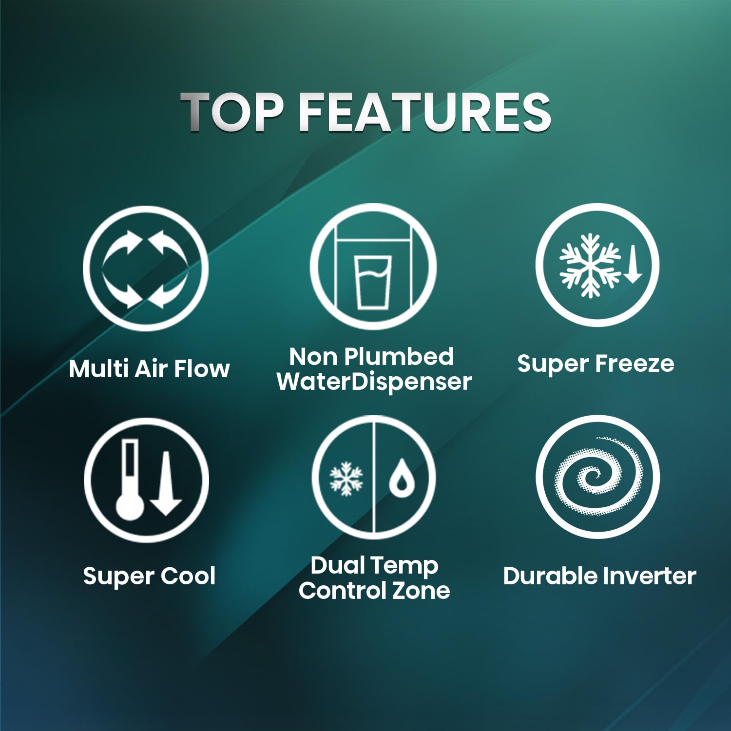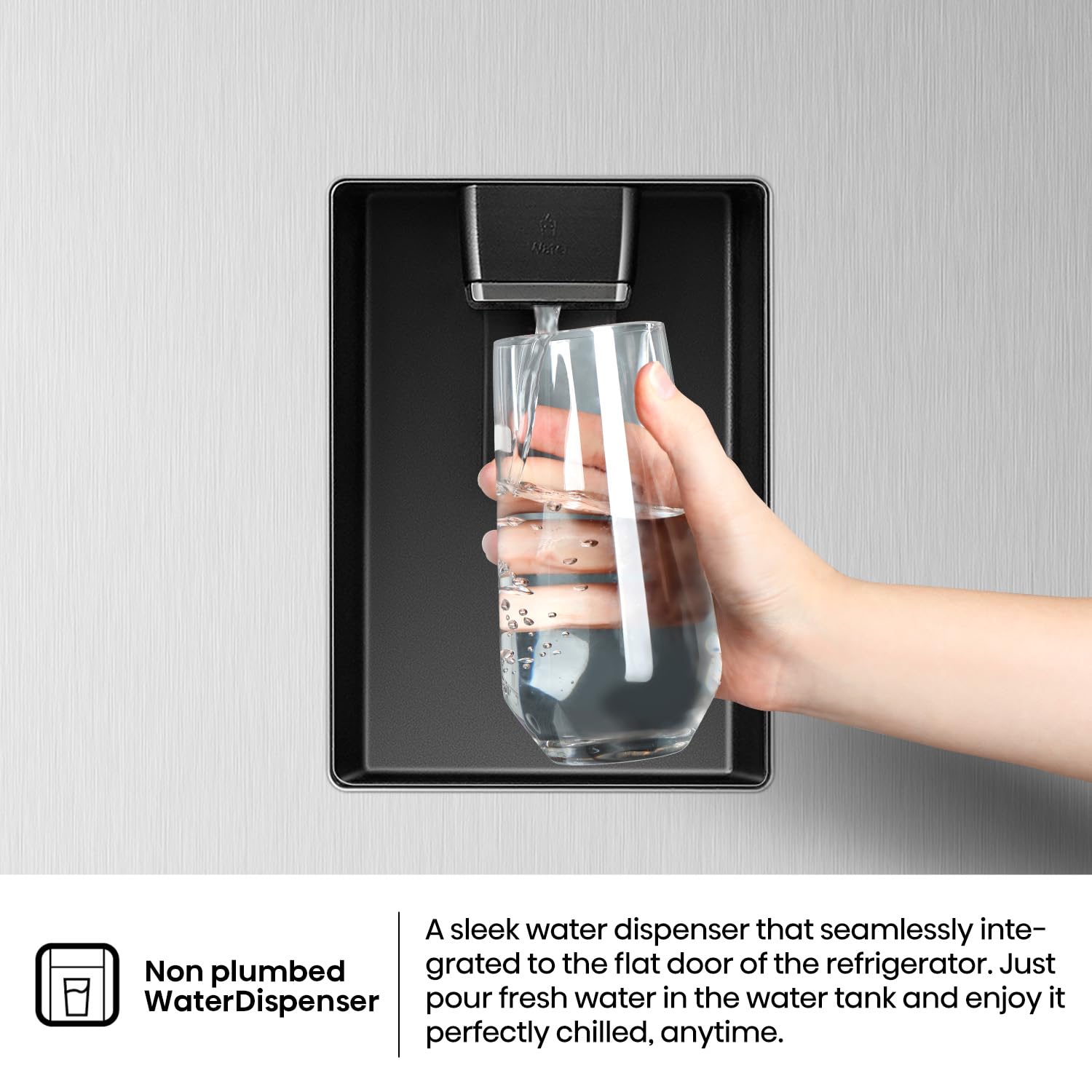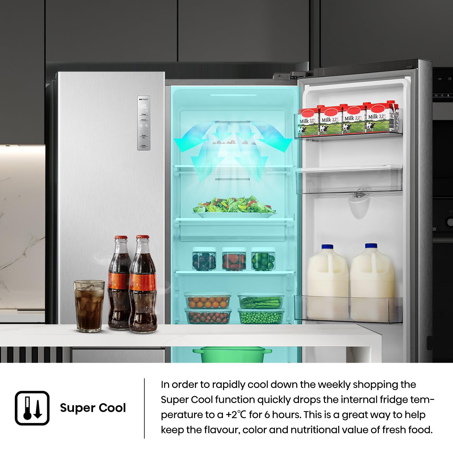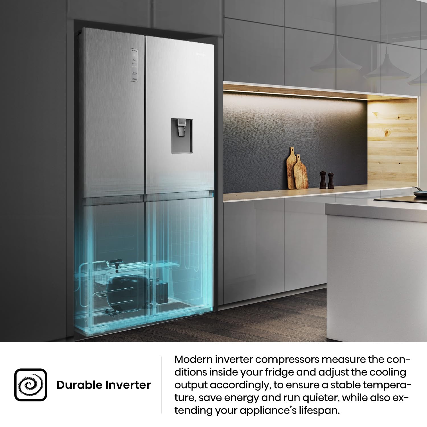 Hisense RS3N668SMI3 - ثلاجة ببابين جنبًا إلى جنب 869L ثلاجة، موزع مياه بدون سباكة، منطقة تحكم مزدوجة في درجة الحرارة، عاكس متين، 91×71.7×179.5 سم (طول×عرض×ارتفاع)، فضي
