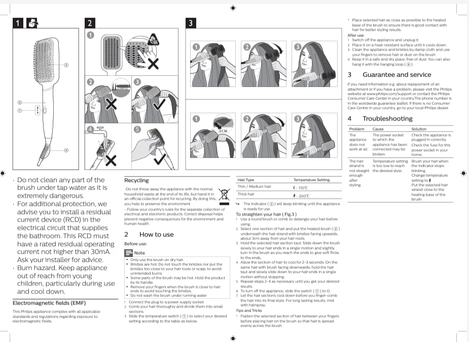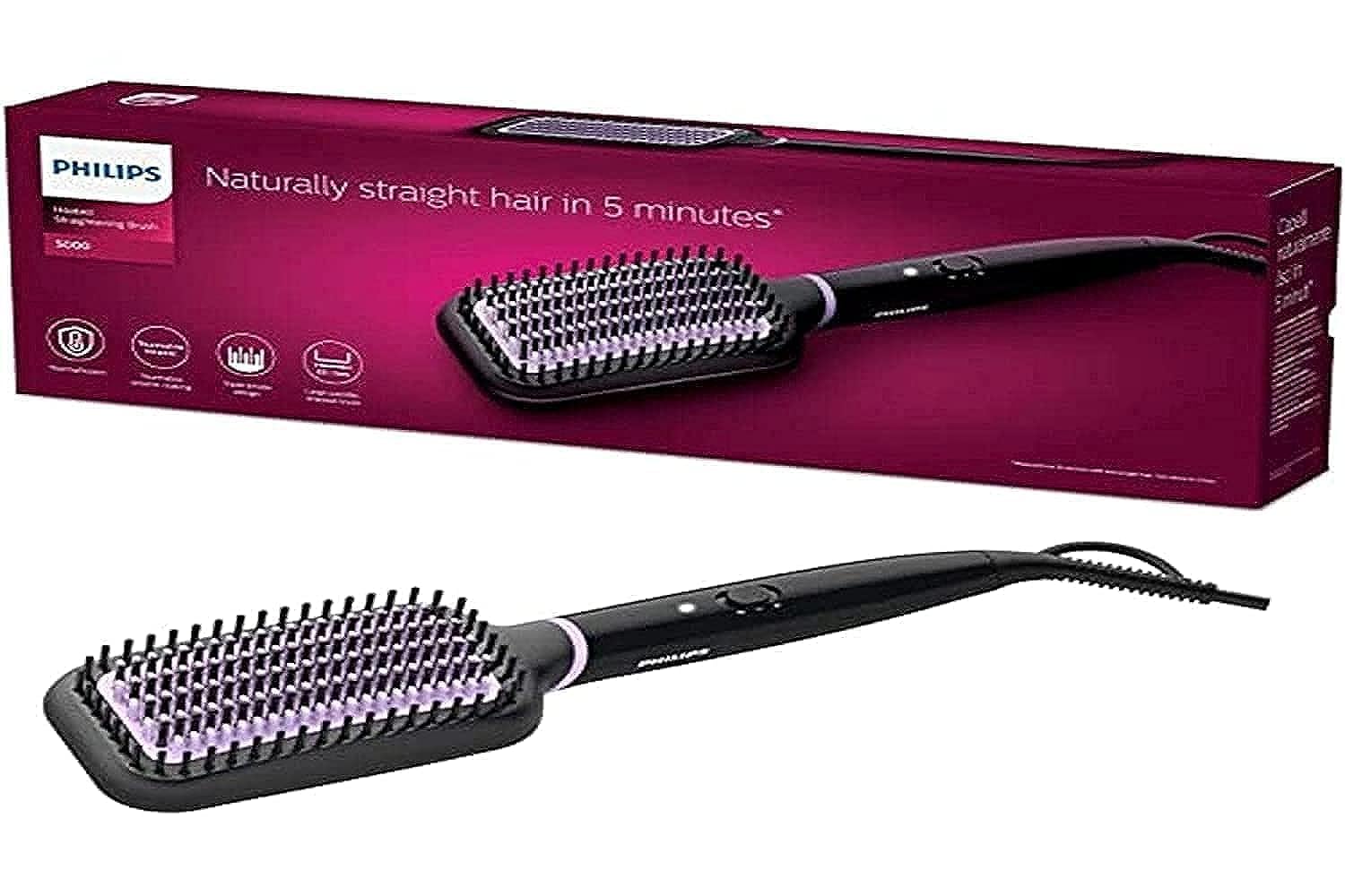 - تصميم الشعيرات الثلاثية يعمل على فك تشابك الشعر وتقويمه بلطف ويحمي فروة رأسك من الحرارة