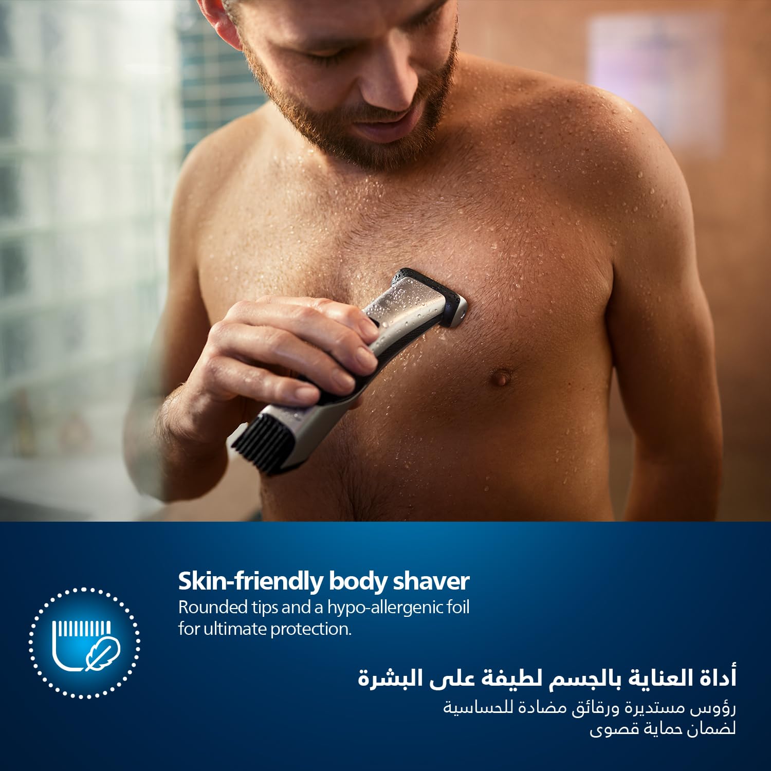 تتميز ماكينة حلاقة الجسم فيليبس بودي جروم سيريز 7000 المقاومة للماء bg7025/13 بتصميم فريد مزدوج الجوانب يتيح لك التبديل بين الحلاقة والتشذيب. تتكيف الماكينة مع منحنيات جسمك لحلاقة ناعمة. تتميز بخمسة أطوال مختلفة لتشذيب أي جزء من جسمك. ماكينة حلاقة للجسم مقاومة للماء. فرشاة تنظيف. حقيبة تخزين. دليل المستخدم. ضمان.
