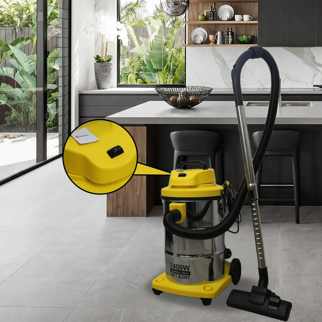 مزود بمحرك بقوة 1400 واط، يوفر هذا المكنسة الكهربائية شفطًا قويًا لمهام التنظيف الرطب والجاف، مما يضمن الكفاءة عبر الأسطح المختلفة.