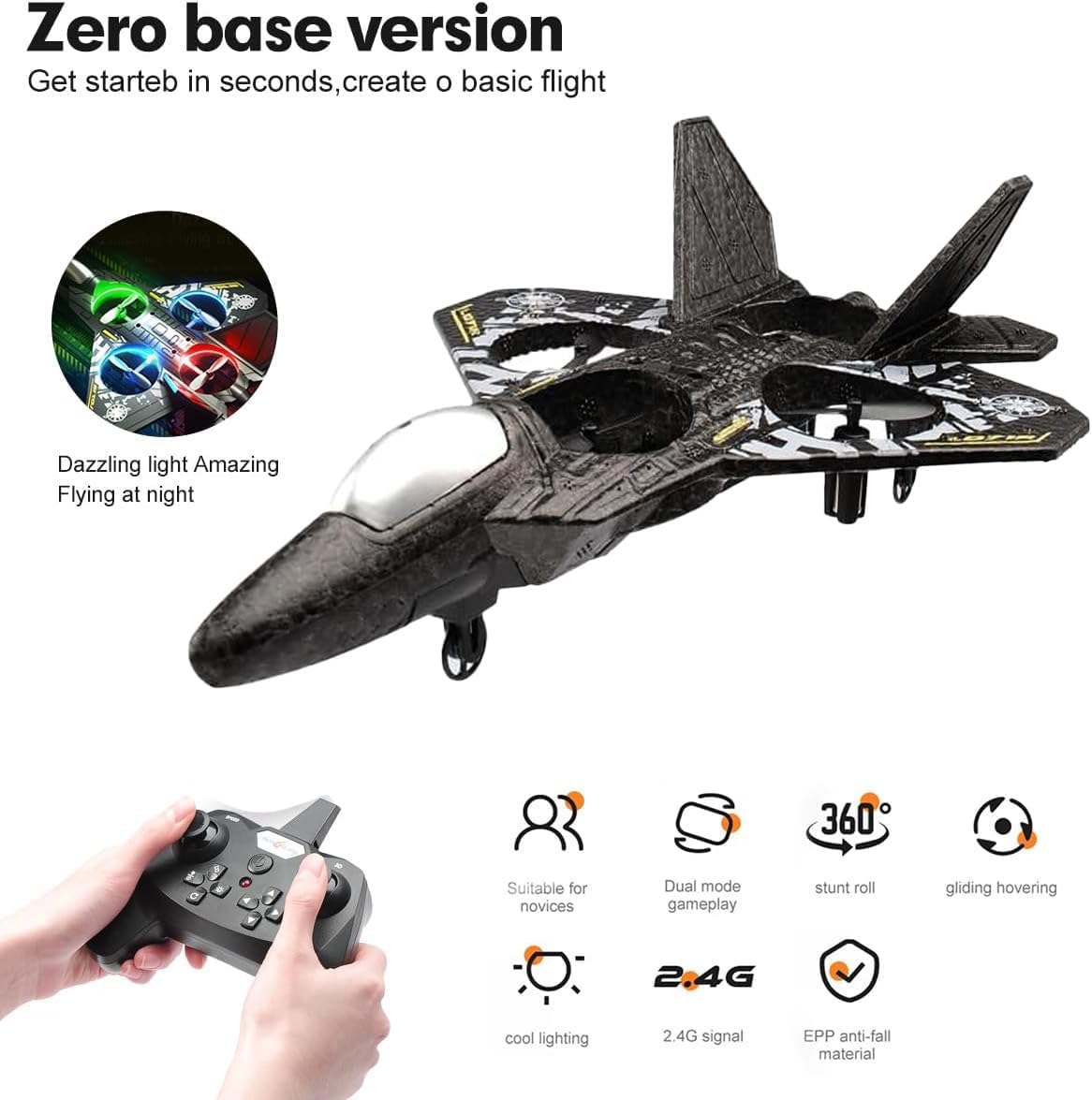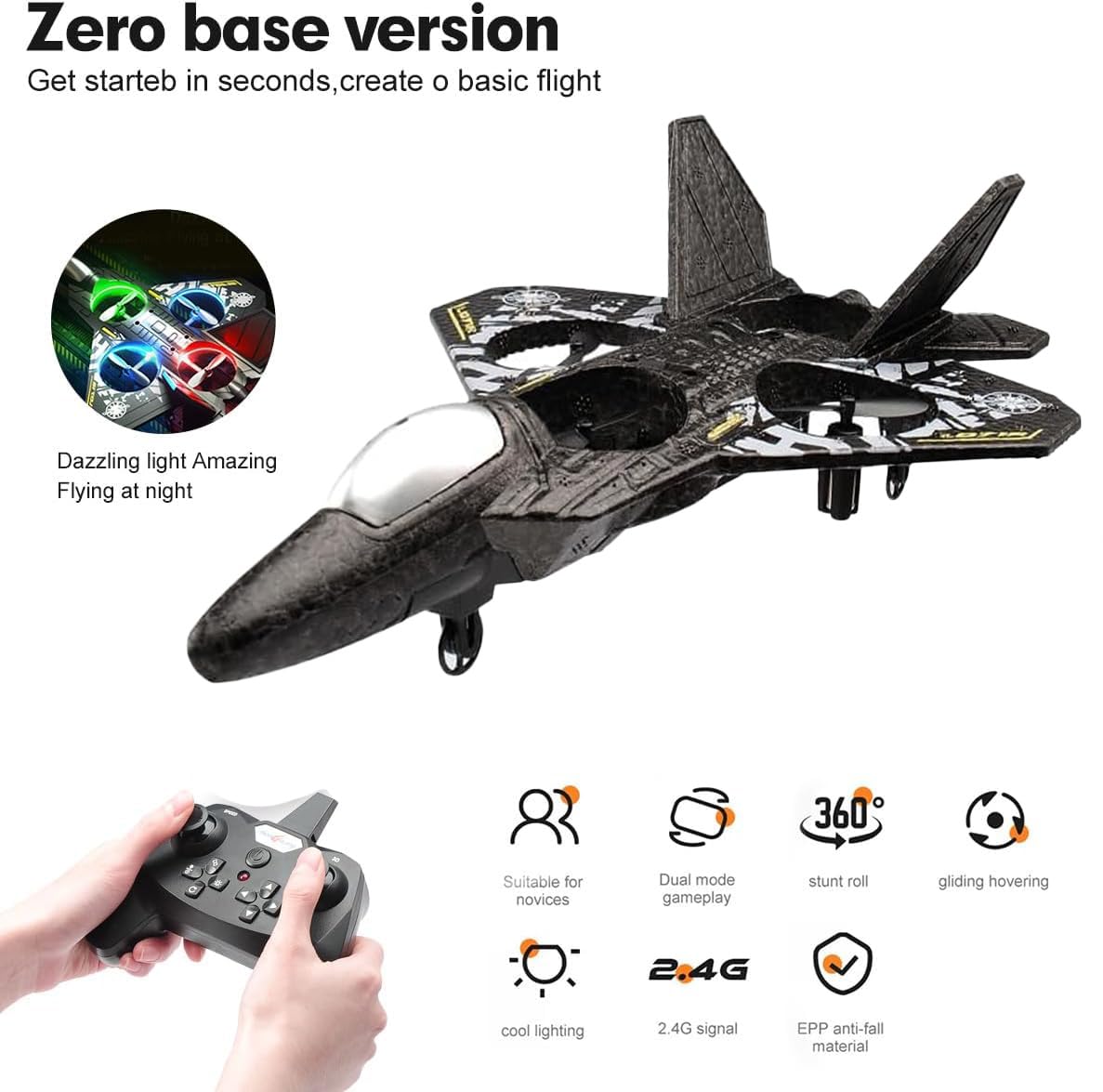 BORTONY RC Helicopter Plane for Kids LO712, 2.4Ghz Remote Control Jet Fighter Airplane 3D Flip Quadcopter Toy Gifts, Cool Lights Stunt Airplane Roll Hovering for Boys Beginners (LO712)