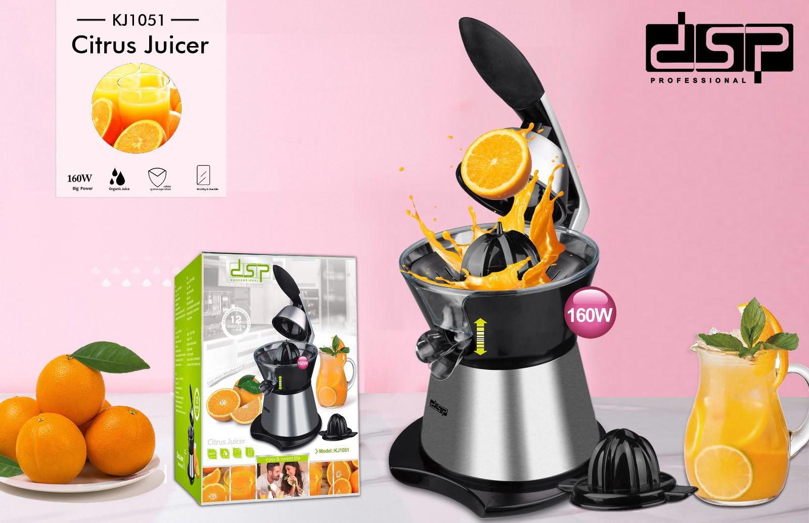 This 160W citrus juicer features a quiet motor. Start your day with fresh juice in minutes. It produces more juice with less waiting time. No noise, so you don't have to worry about waking the neighbors.