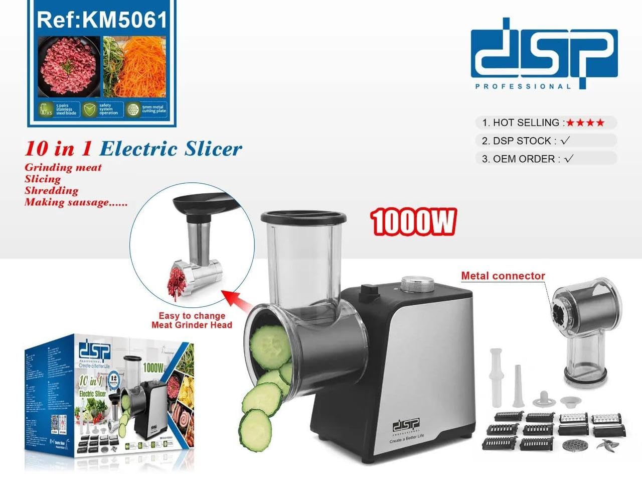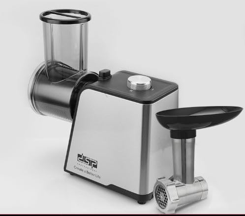 Stainless Steel Body Accessories: Stainless Steel Cross Cutter, 5mm Metal Cutting Board, Plastic Tray, Food Pusher, Sausage and Kibbeh Maker, 5 Pairs of Stainless Steel Vegetable Cutting Blades, Large-Gauge Vegetable Slicer