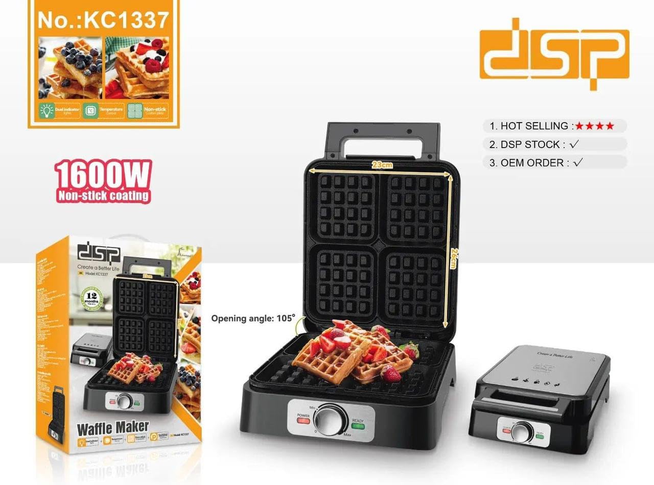 DSP KC1337 Waffle Maker, 1600W, Non-stick coated aluminum plate