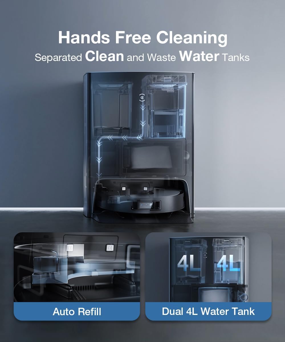 【Omni Station (Automatic Cleaning + Auto Vacuuming)】 A fully automatic cleaning solution, completely freeing your hands and allowing you to enjoy a clean life. It automatically enters low-power mode after a long standby period, saving energy and providing safety. 【Ecovacs 1-Year Warranty】