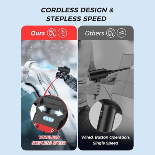 Easy-to-Use Design: This cordless blower makes cleaning tight spaces easy with its lightweight construction and adjustable speed control. You can easily customize the airflow to suit your various cleaning needs. The powerful turbo fan is great for cleaning delicate electronics, reaching dusty corners, and handling outdoor cleaning tasks. Whether you're at home or camping, this versatile tool gets the job done efficiently. Versatile: Equipped with a handy chopping knife and safety hammer, the air dryer goes beyond cleaning by adding useful tools for emergencies, combining safety with functionality.