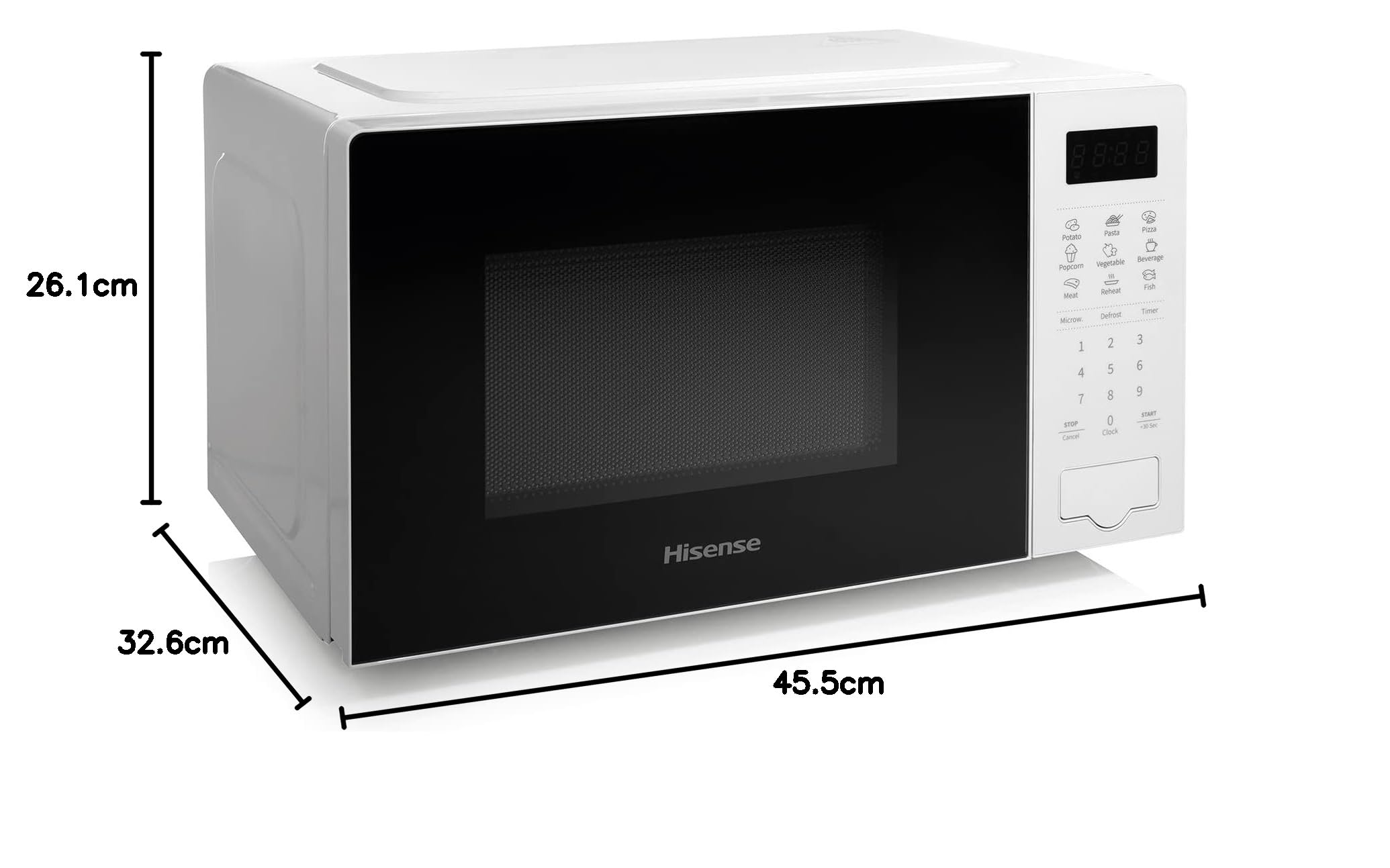 Enjoy your favorite snacks with this Hisense microwave. Thanks to the wide turntable and 20-liter capacity, families of 3 or 4 can enjoy a quick serving of mac and cheese. And with 700 watts of power, you can rest assured that your sides will be ready quickly. Never know which setting to choose for your popcorn? Thanks to the automatic programs, there's no guesswork—all you have to do is wait for the ping. But if you prefer control, you can cook everything to perfection with the handy timer.