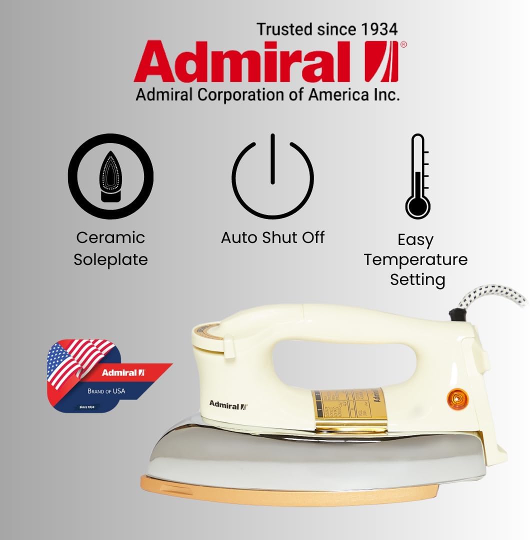Admiral Heavy Weight Dry Iron, 2400 Input Watt with Ceramic Golden Soleplate Coating, Auto Shut Off Function - ADDI79B (1 Year Warranty)