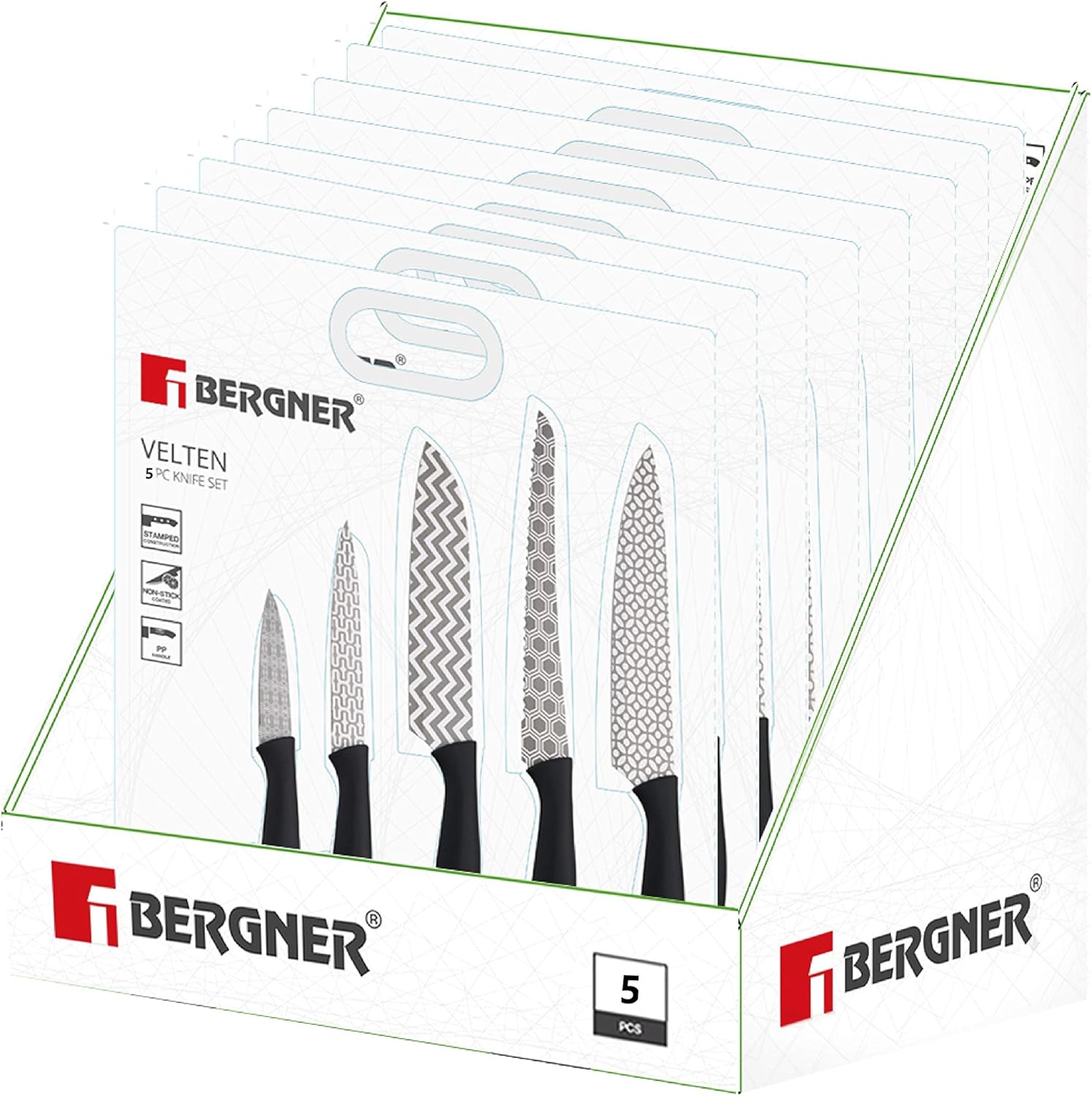 Bergner Velten 5 Pcs Knife Set, Stainless Steel, Black, BG39320mm