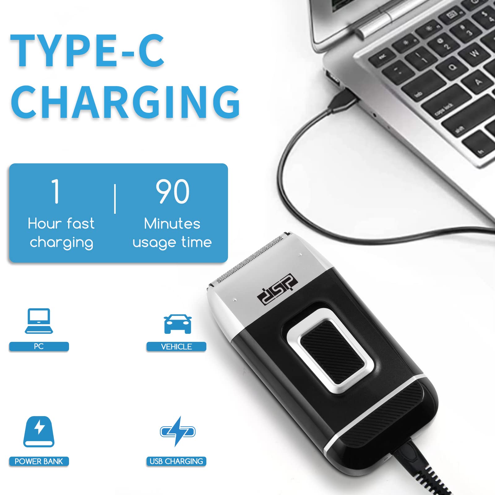 【Precise and Thorough Cutting】The electric shaver's double floating mesh cutter head conforms to the contours of the face, capturing more hair and increasing the shaving area for a precise and thorough shave. It's no problem for a quick shave.