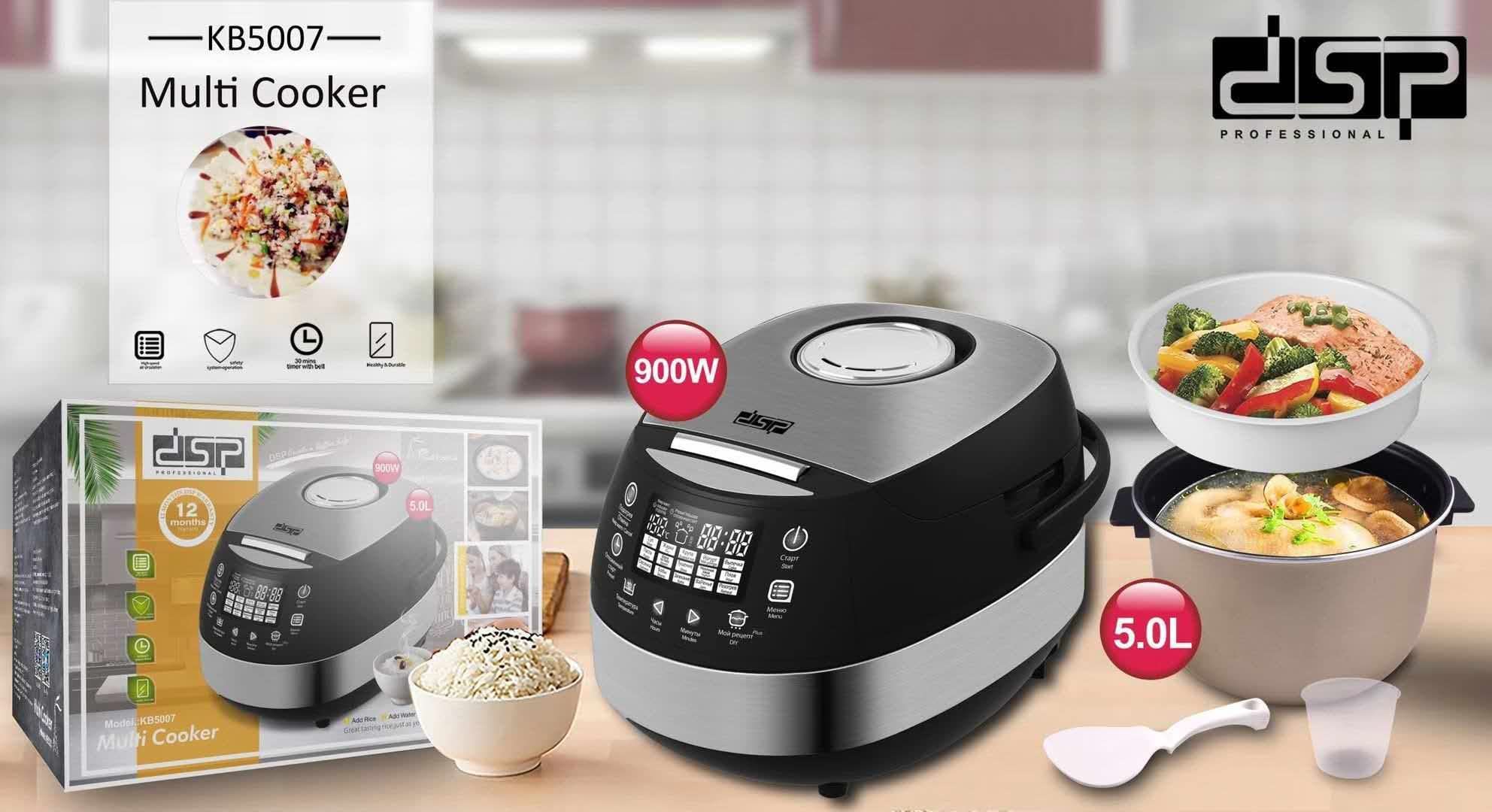 DSP Multicooker 900W 5L Black and Silver Model KB5007 - Full 1-year warranty. Extremely practical and versatile, every home should have one appliance – one that cooks so much and satisfies all your family's tastes, quickly and simply.