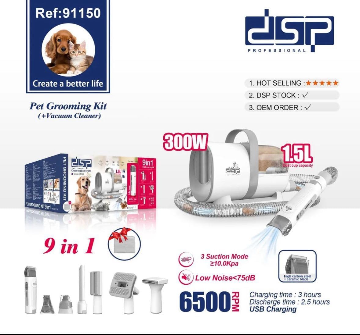 DSP 91150 Pet Grooming Vacuum Machine 300W |1.5L Dust cup capacity Share WhatsApp Deel X Sale -20% DSP 91150 Pet Grooming Vacuum Machine 300W |1.5L Dust cup capacity Share WhatsApp Deel X Product form AED 400.00 AED 319.00 Default Title Free pickup in our shop(s) Add to cart This item is a recurring or deferred purchase. By continuing, I agree to the cancellation policy and authorize you to charge my payment method at the prices, frequency and dates listed on this page until my order is fulfilled or I cancel, if permitted. SKU: 91150-DSP VendorDsp Guaranteed secure & safe checkout. Tell a unique detail about this productTell a unique detail about this product