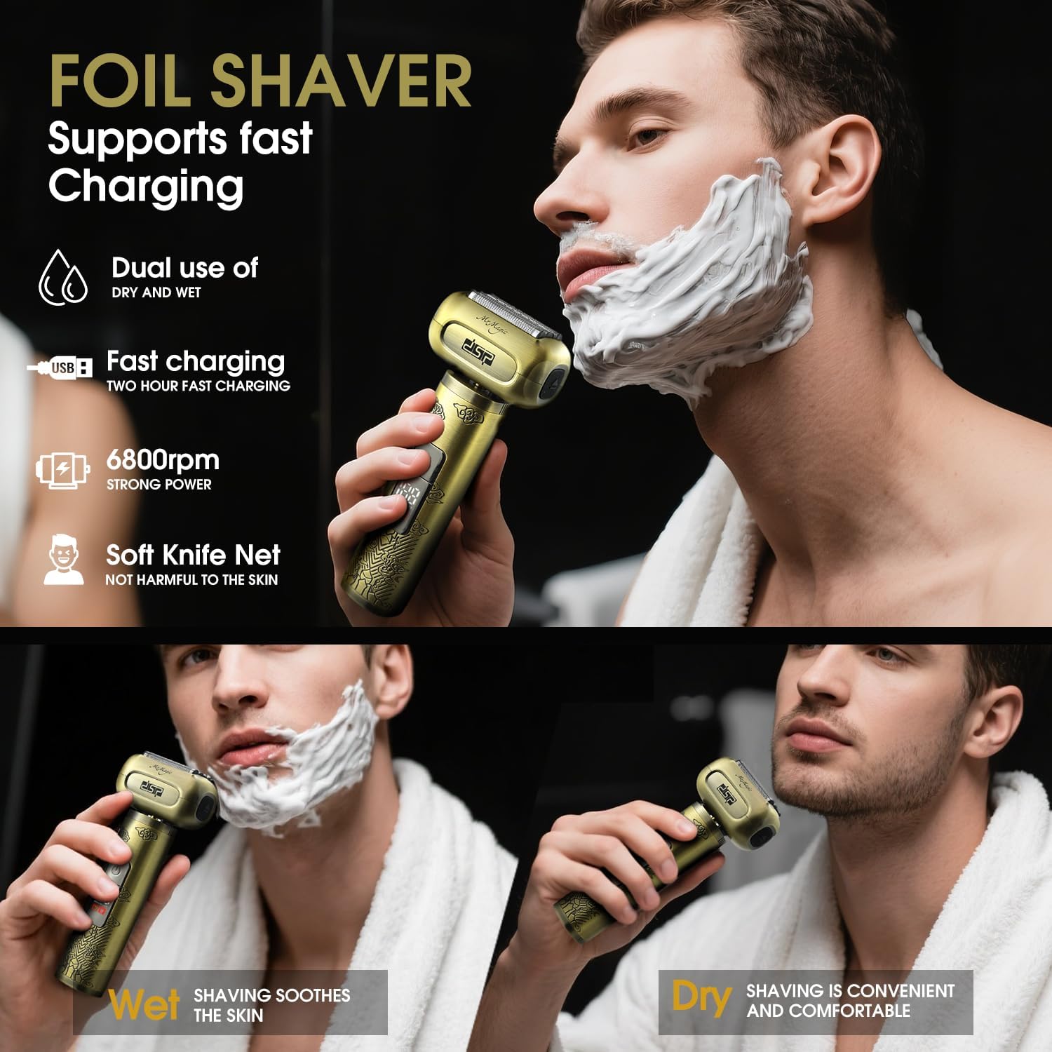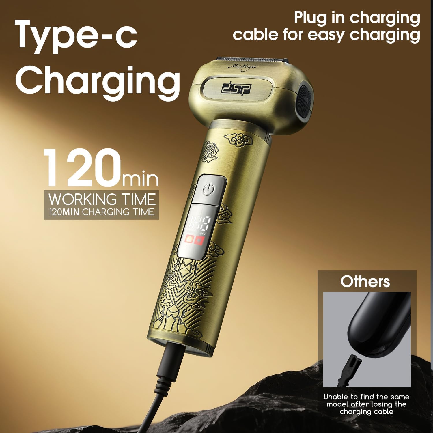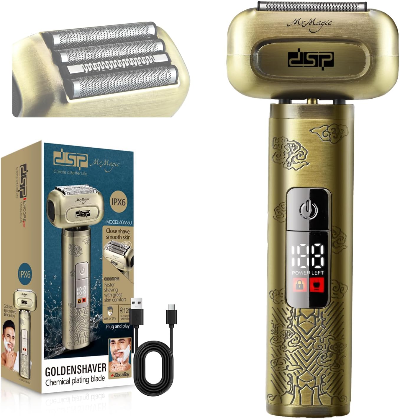 DSP Electric Shavers for Men, IPX6 Waterproof, Type-C, Rechargeable Shaver, 4-Blade Cutting System, Electric Foil Shaver, Travel Lock (Bronze)