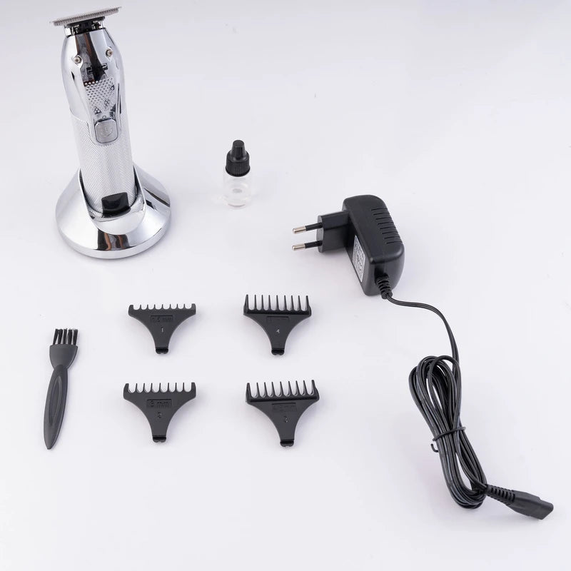 DSP model 90399 is one of the latest high-quality line trimmers with a powerful motor with a speed of 6000-7000 rpm. This machine uses a 2000 mAh lithium-ion battery that can work continuously for 3 hours with each full charge. The device has a charging stand and an LED display to show the battery status. The blades of the device are made of stainless steel, which is highly resistant to moisture and rust and will not cause any sensitivity if the blade comes into contact with the skin. It should be noted that this device is not waterproof and it is better not to use it in wet places. The items included with the product include an adapter, 4 shaving combs with sizes of 1.5, 3, 4.5, 6 mm, a cleaning brush and special shaving oil. In general, you can use this device for line trimming, trimming and shaving the head and face.