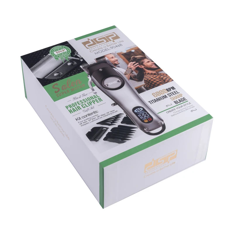 The DSP 90468 model shaver is a device for shaving facial and body hair equipped with a 2500mAh lithium battery. This shaver is rechargeable and having a USB cable and adapter allows you to charge it anywhere. For shaving hair of different sizes, 4 shaving combs in sizes from 3 to 13 mm are provided with the device, which are locked onto the blade. These combs are installed on the machine's titanium blades and the shaving length can be changed using them. As mentioned, the shaver's energy is provided by its powerful rechargeable lithium battery. The battery takes 3 hours to fully charge and 4 hours to charge. A cleaning brush is also included in the box, and to extend the life of the blades, it is better to clean the hair fragments with a brush after each use. In short, the items included with the DSP 90468 hair trimmer include 4 adjusting combs, oil, adapter, and cleaning brush, and it is suitable for trimming facial and body hair.