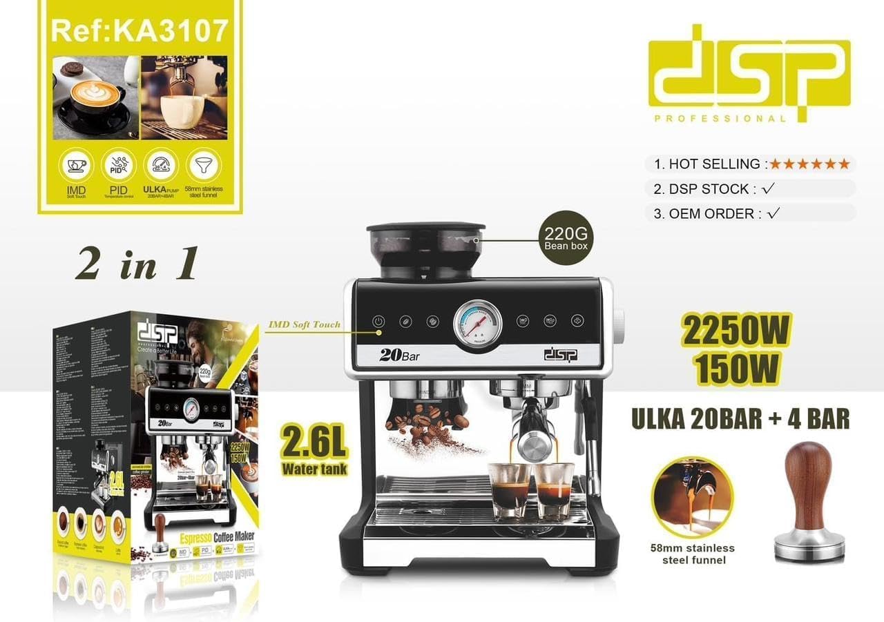 DSP KA3107 Espresso Coffee Maker 2.6L Water Tank | ULKA 20 Bar + 4 Bar.2250W
