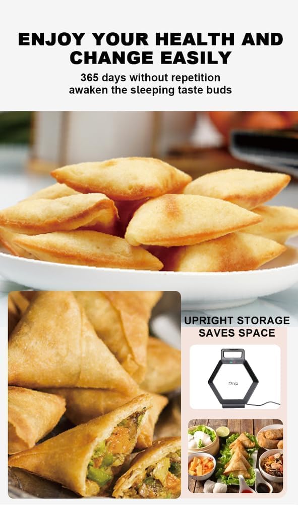 Make delicious samosas and dumplings with ease using our electric samosa dumpling maker. This efficient appliance features a non-stick cooking plate with 8 cavity molds for even baking. The powerful 1200W heating element ensures quick and consistent results, making it perfect for both home cooks and restaurant professionals.