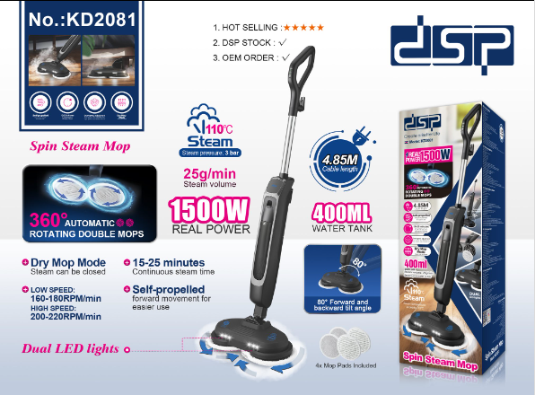 🧹 Dry & steam mopping ➔ Steam on/off for gentle floor care