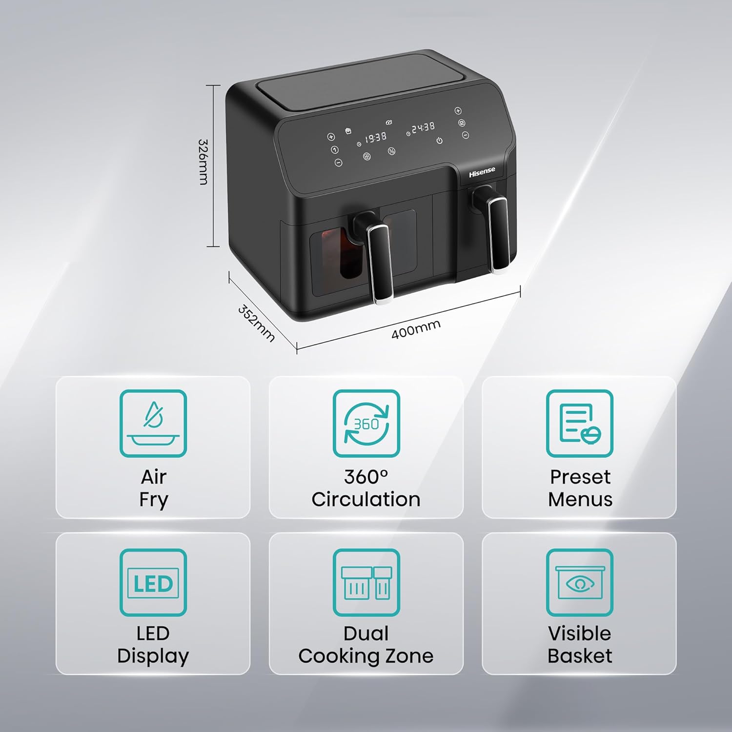 Hisense 9L Dual Basket Air Fryer, Air Fry, Preset Menus, 360° Circulation, LED Display, Dual Cooking Zone, Visible Basket, H09AFBK2S5 Share WhatsApp Deel X Sale -27% Hisense 9L Dual Basket Air Fryer, Air Fry, Preset Menus, 360° Circulation, LED Display, Dual Cooking Zone, Visible Basket, H09AFBK2S5 Share WhatsApp Deel X Product form AED 550.00 AED 399.00 Default Title Free pickup in our shop(s) Add to cart This item is a recurring or deferred purchase. By continuing, I agree to the cancellation policy and authorize you to charge my payment method at the prices, frequency and dates listed on this page until my order is fulfilled or I cancel, if permitted. SKU: 6974805078509-ANW VendorANWAR-DXB Guaranteed secure & safe checkout. Tell a unique detail about this productTell a unique detail about this product