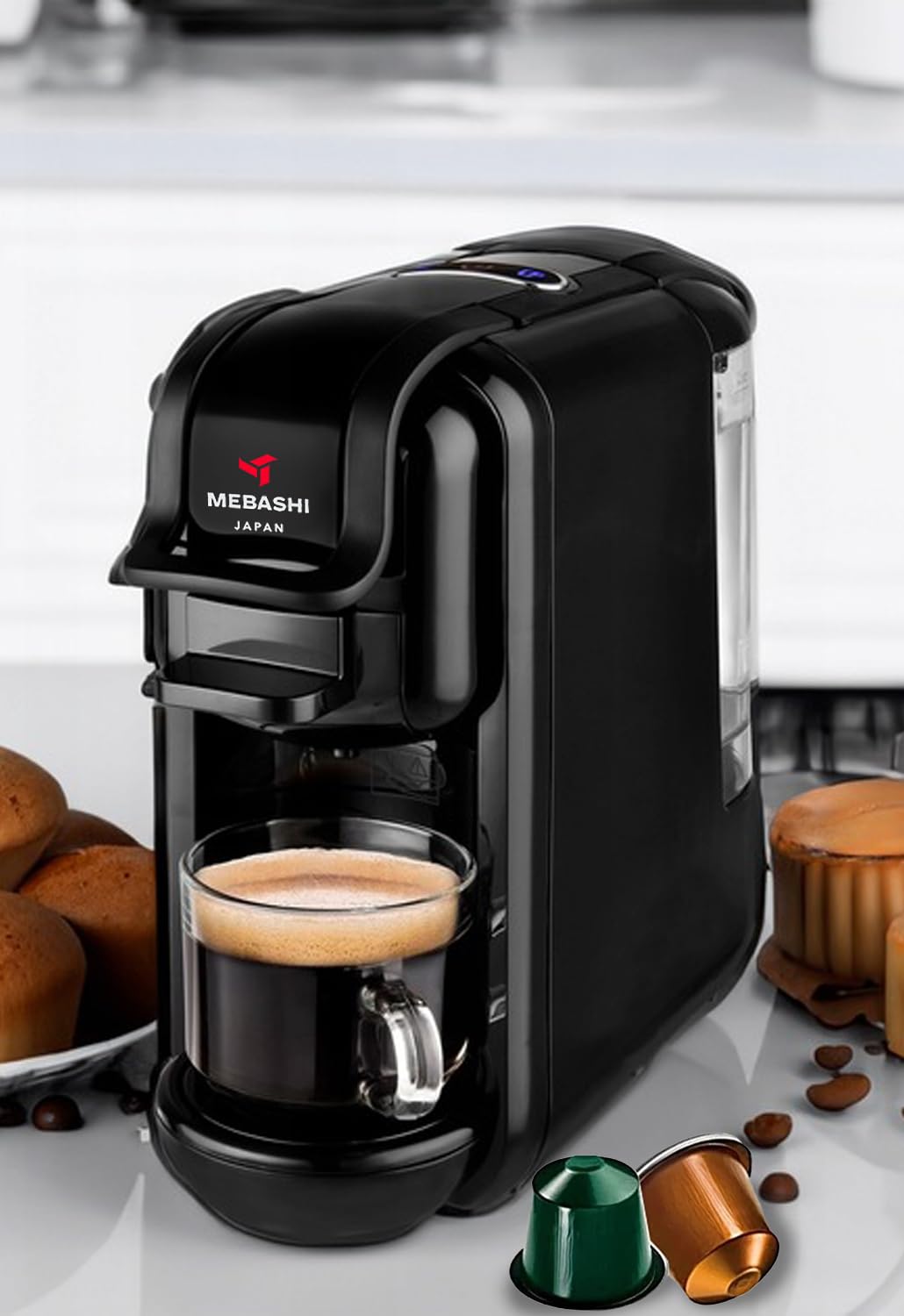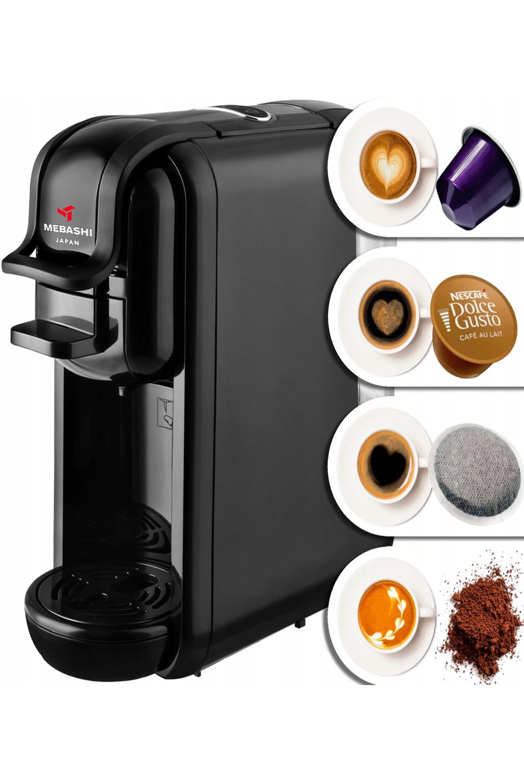 MEBASHI 3-in-1 Multifunction Espresso Capsule Coffee Machine, 600ML Water Tank, 19 Bar Pressure, Auto Shut Off | (ME-CEM302) (Black)|1450W
