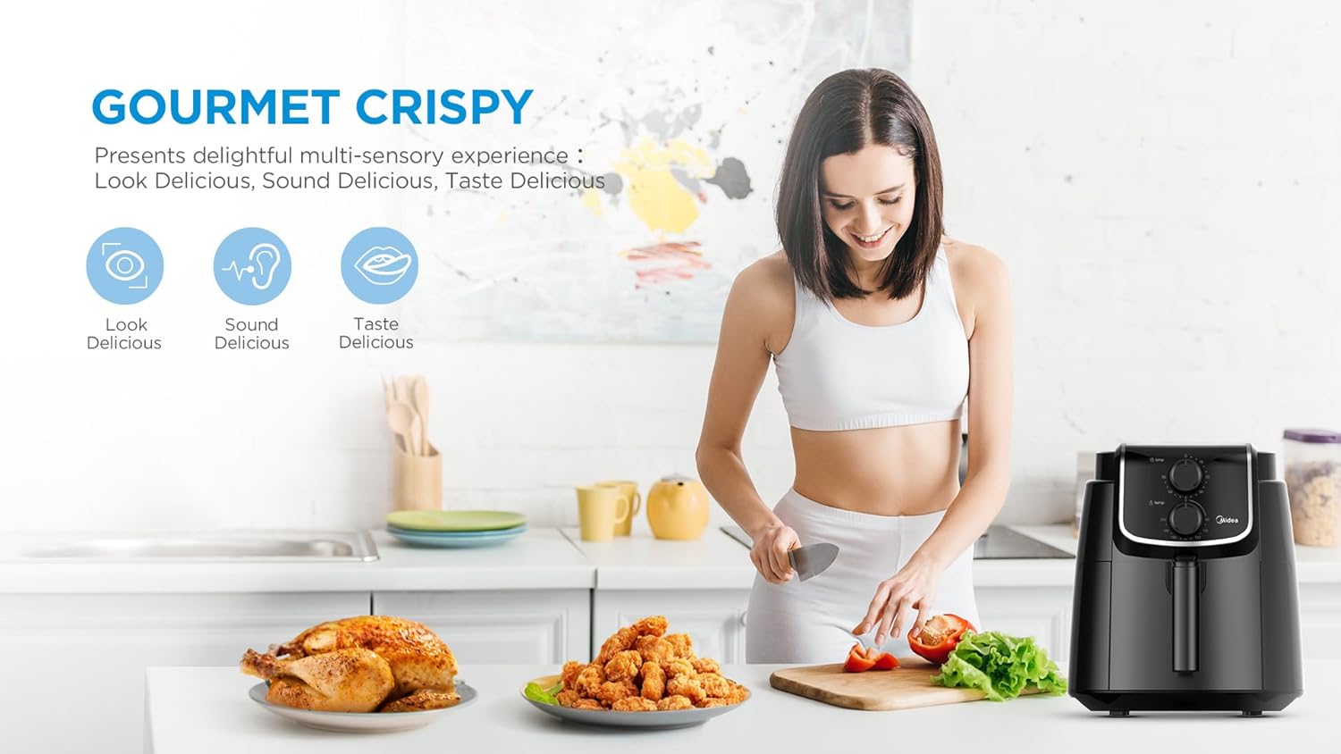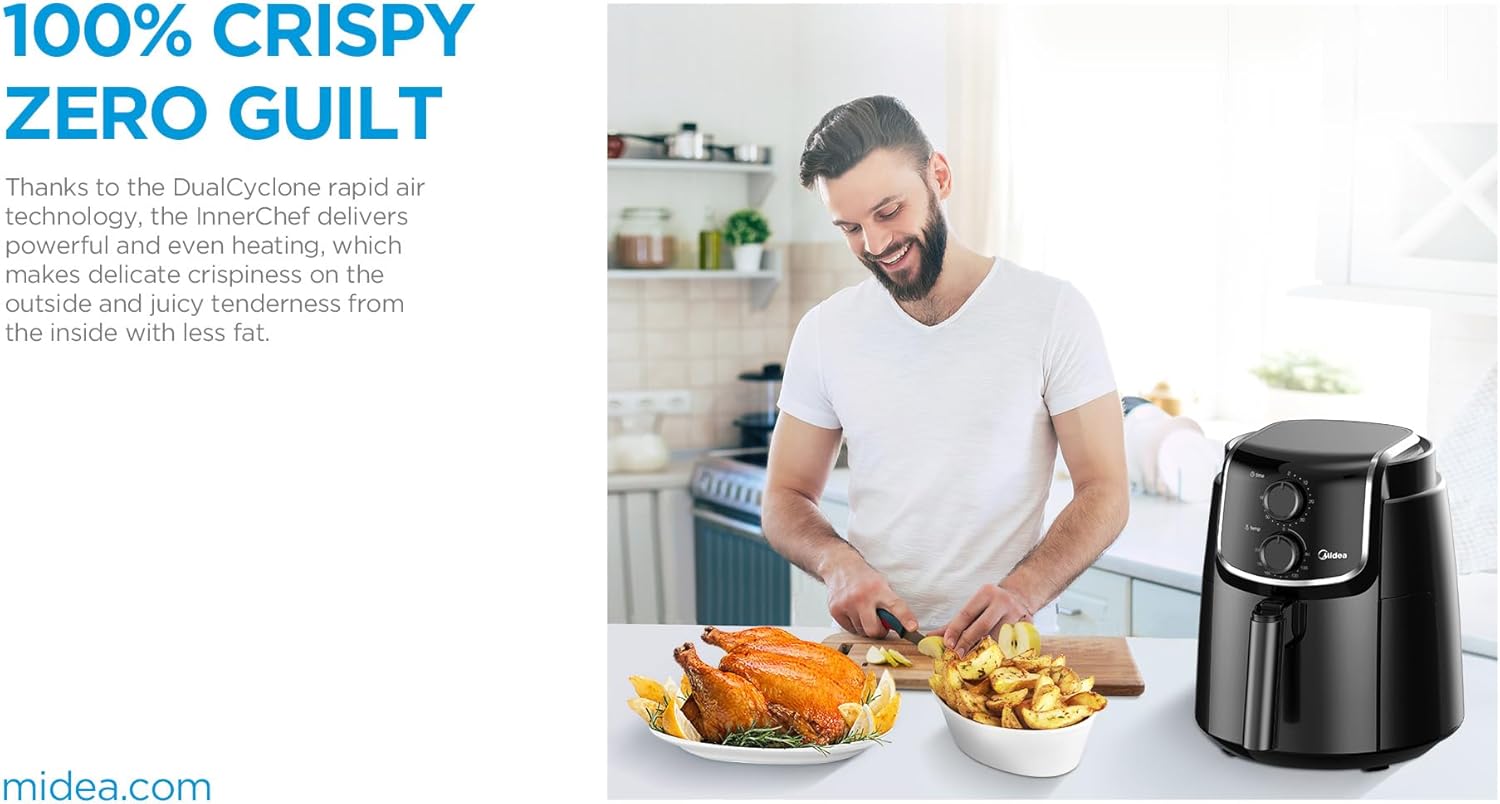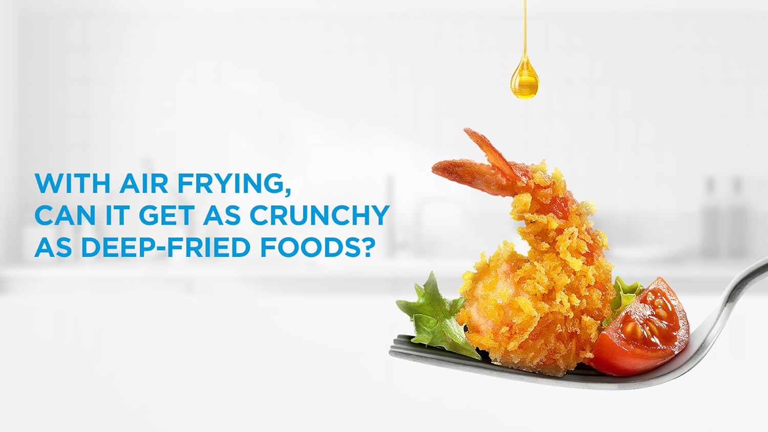 Now you can enjoy crispy and crunching delights without worrying the fat and calories with the innovative DUALCYCLONE rapid air technology. An air fryer is a small countertop convection oven designed to simulate deep frying without submerging the food in oil. A fan circulates hot air at high speed, producing a crisp layer via browning reactions such as the Maillard reaction.