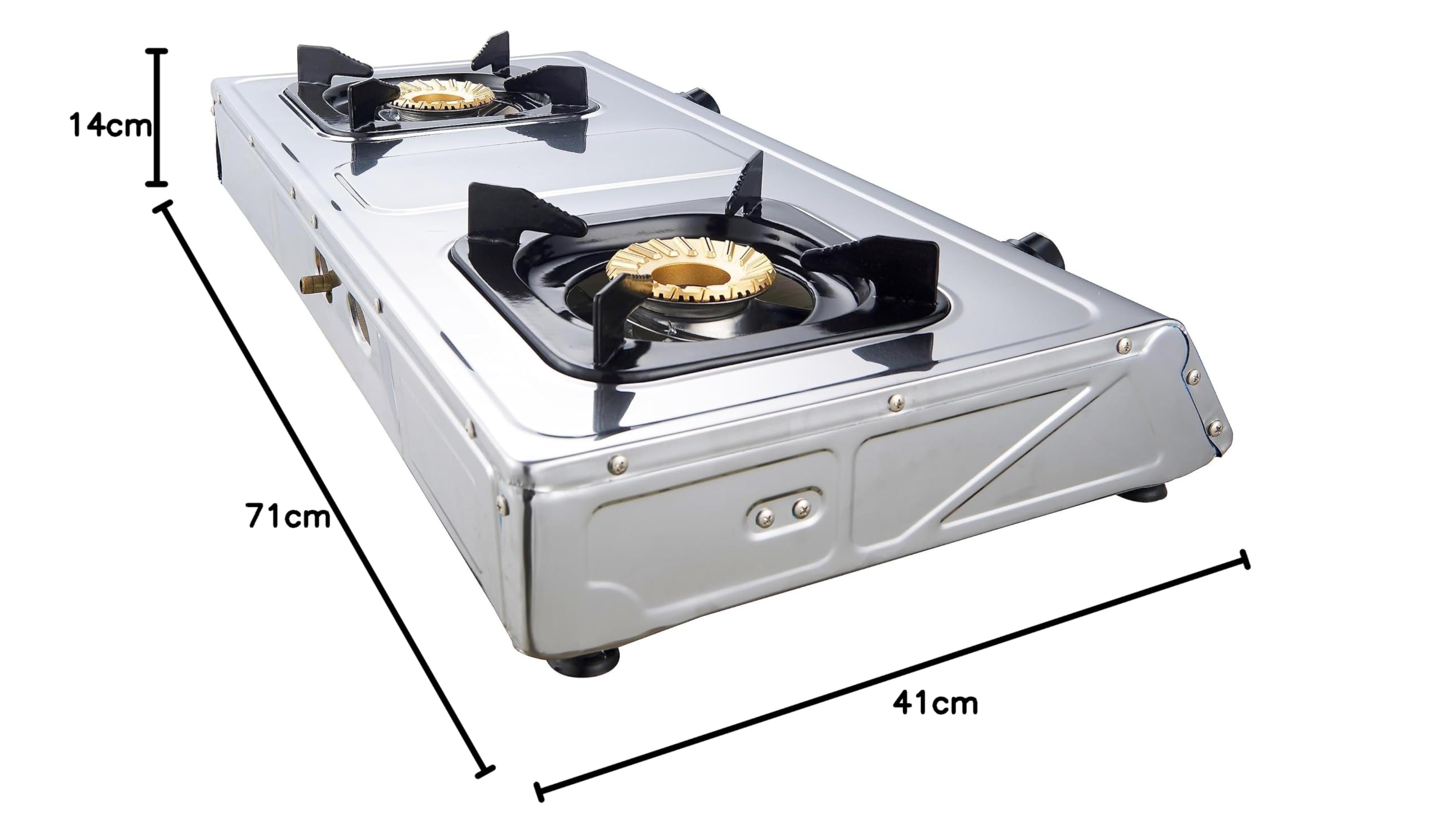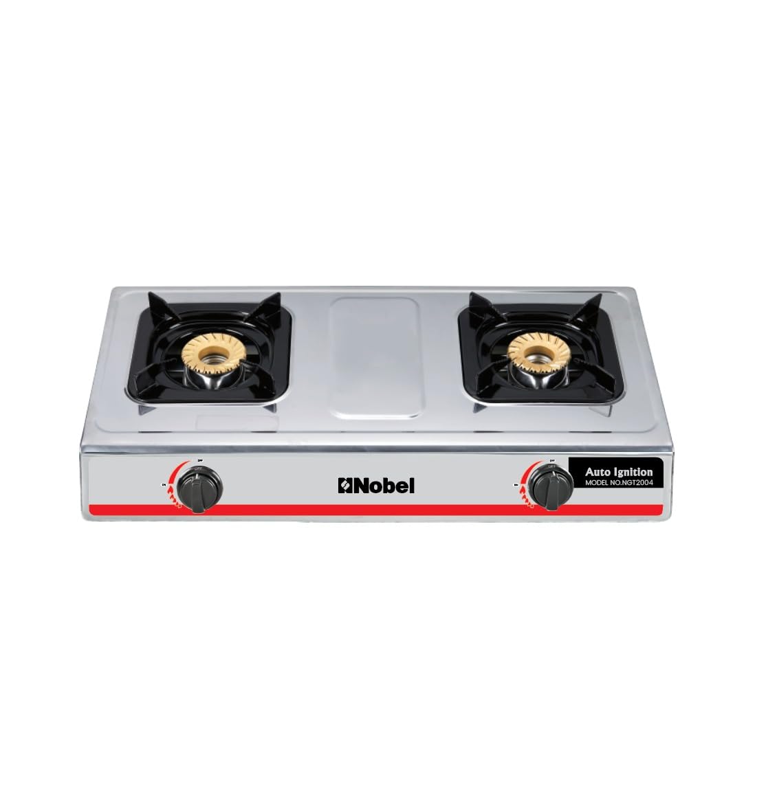 Nobel Gas Stove with Dual Gas Burner/2 Brass Burners and Stainless Steel Brass & Auto Ignition Energy Saving - 710 x 410 x 140 (W x D x H) mm NGT2004 with 2 Year Warranty