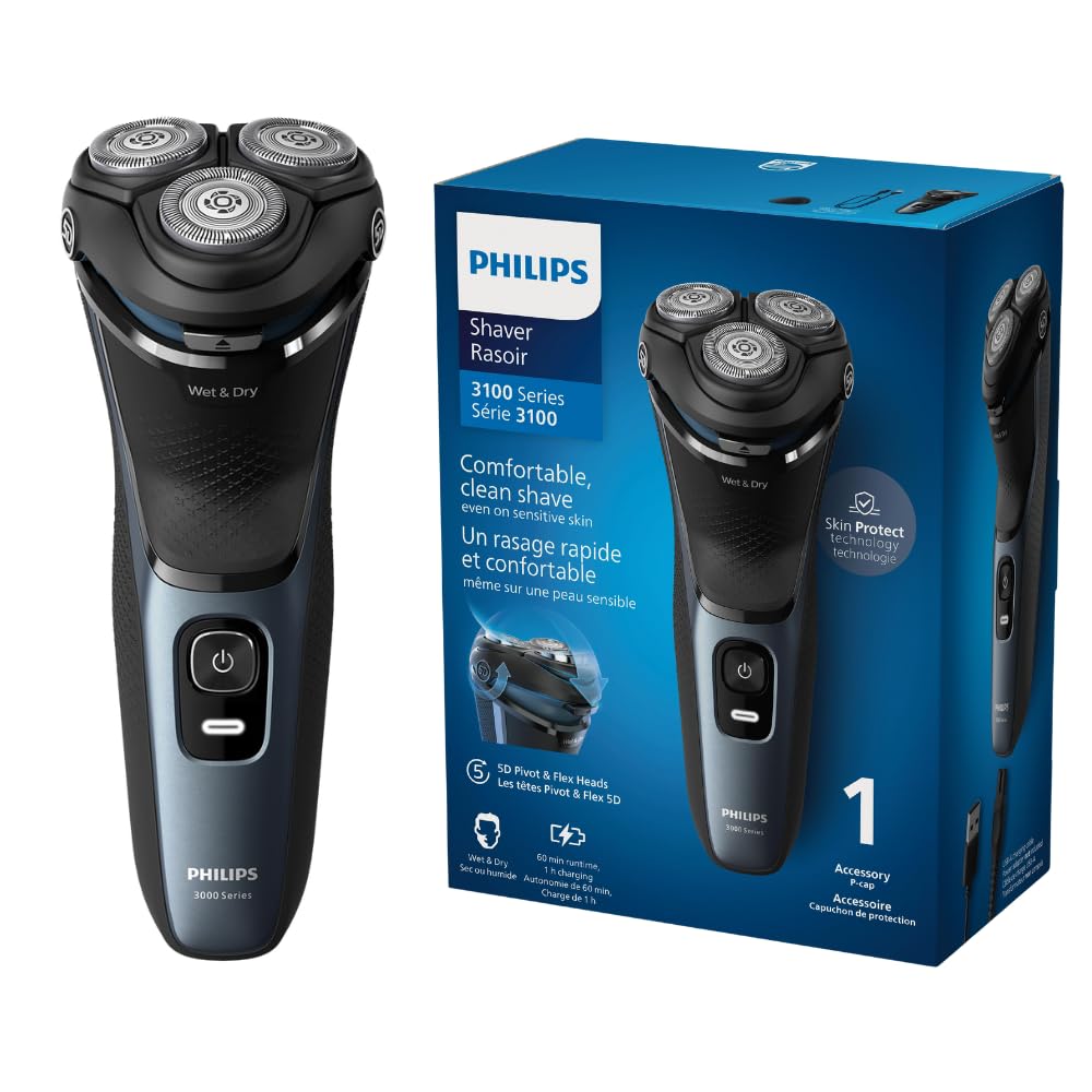 Philips Shaver 3000 Series Wet & Dry Electric Shaver gives you a comfortable, clean shave, even on sensitive skin. 5D Pivot & Flex Heads, 27 self-sharpening PowerCut Blades, and wet and dry use ensure excellent, reliable results every time.
