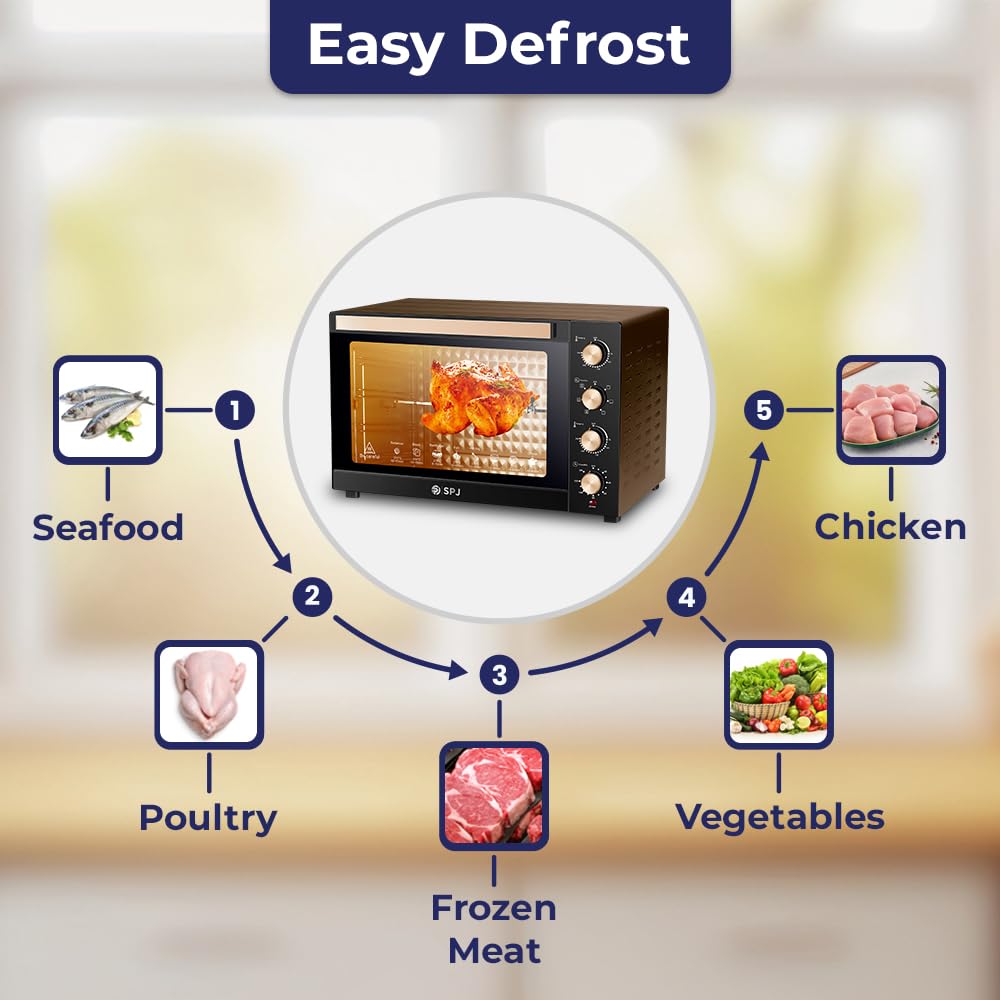 - Gloves: The SPJ Electric Microwave oven includes heat resistance gloves that ensure safe handling of hot cookware.