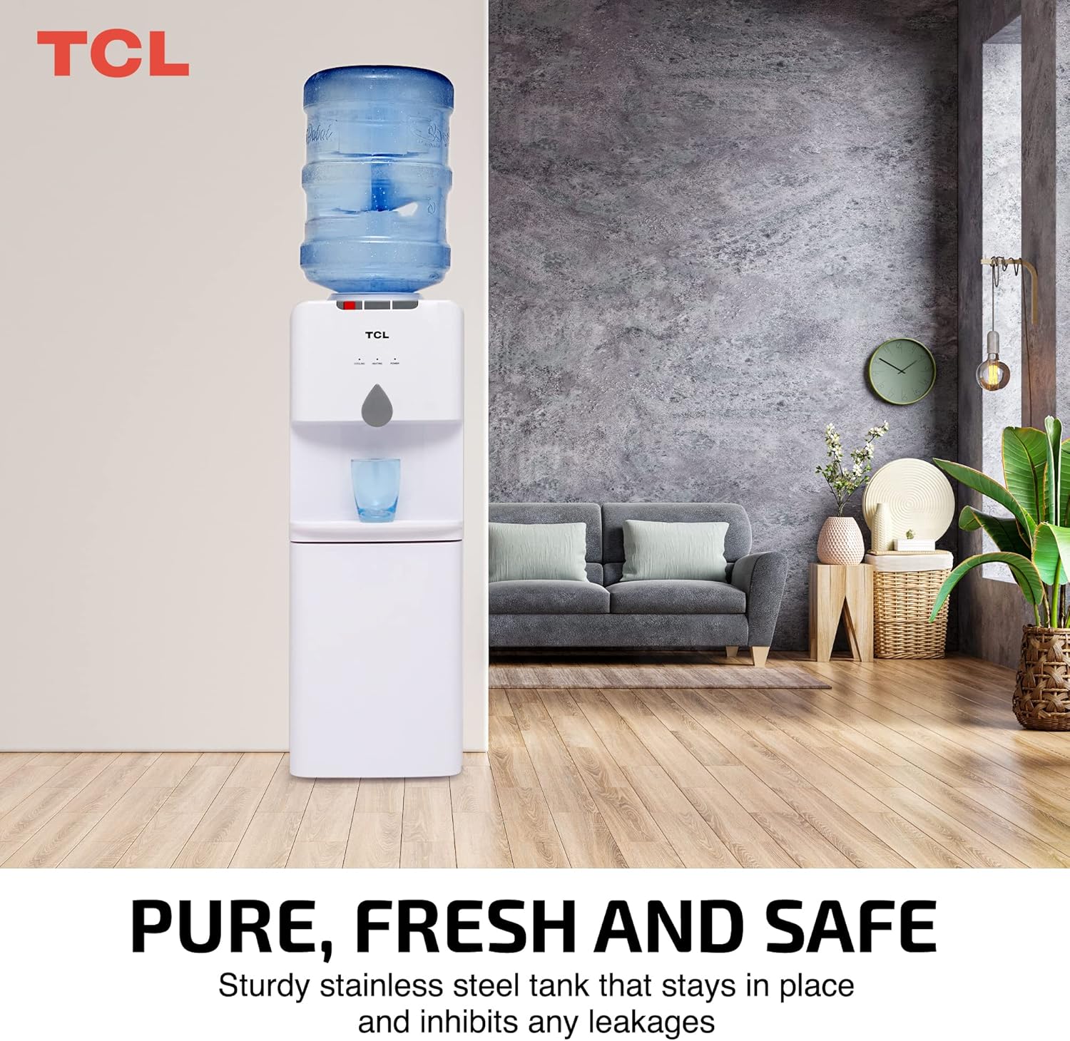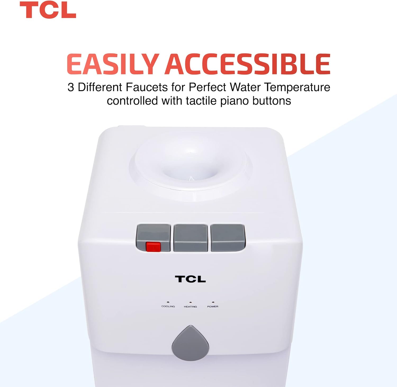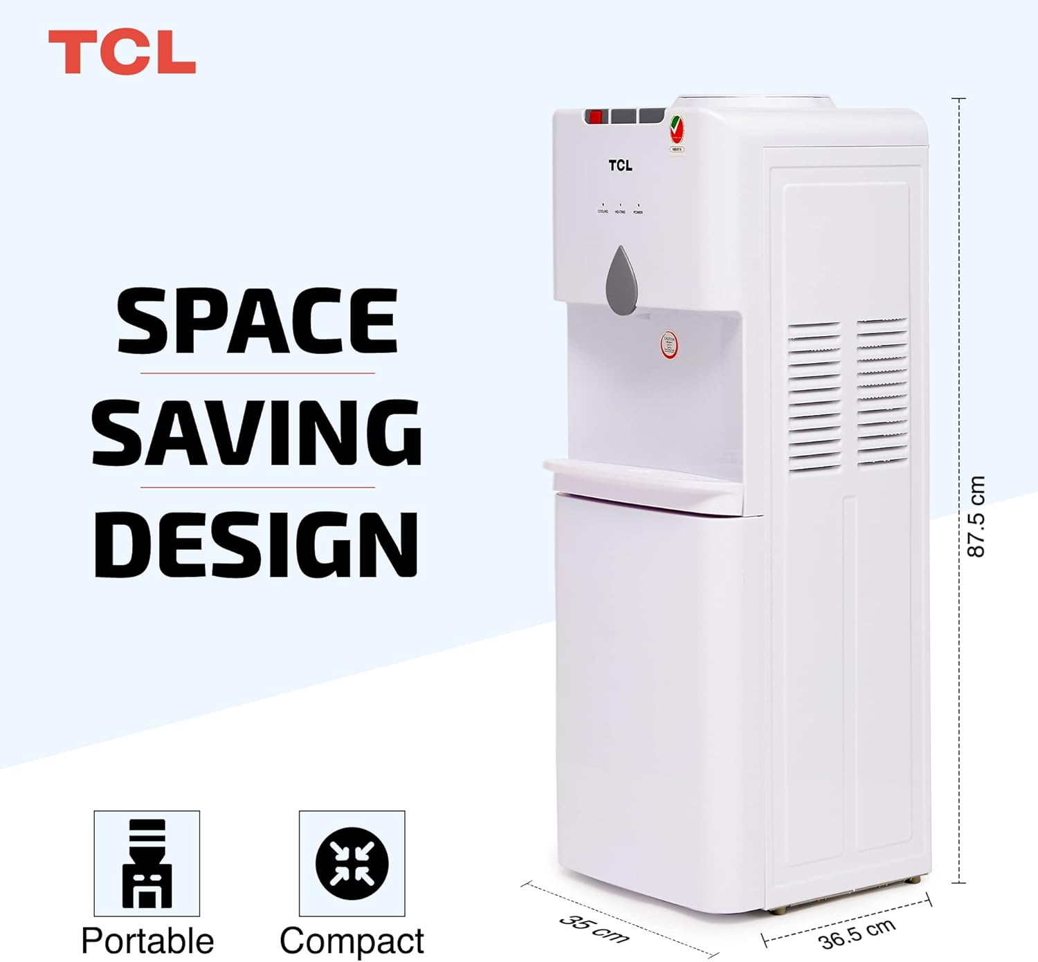 Tcl Water Dispenser, Top Loading, Hot, Cold & Normal Water Temperature, Best For Home, Kitchen, Office & Pantry, Compact Size, 3 Taps/Faucet, Child Safety Lock, White Colour, Ty-Lwyr19W