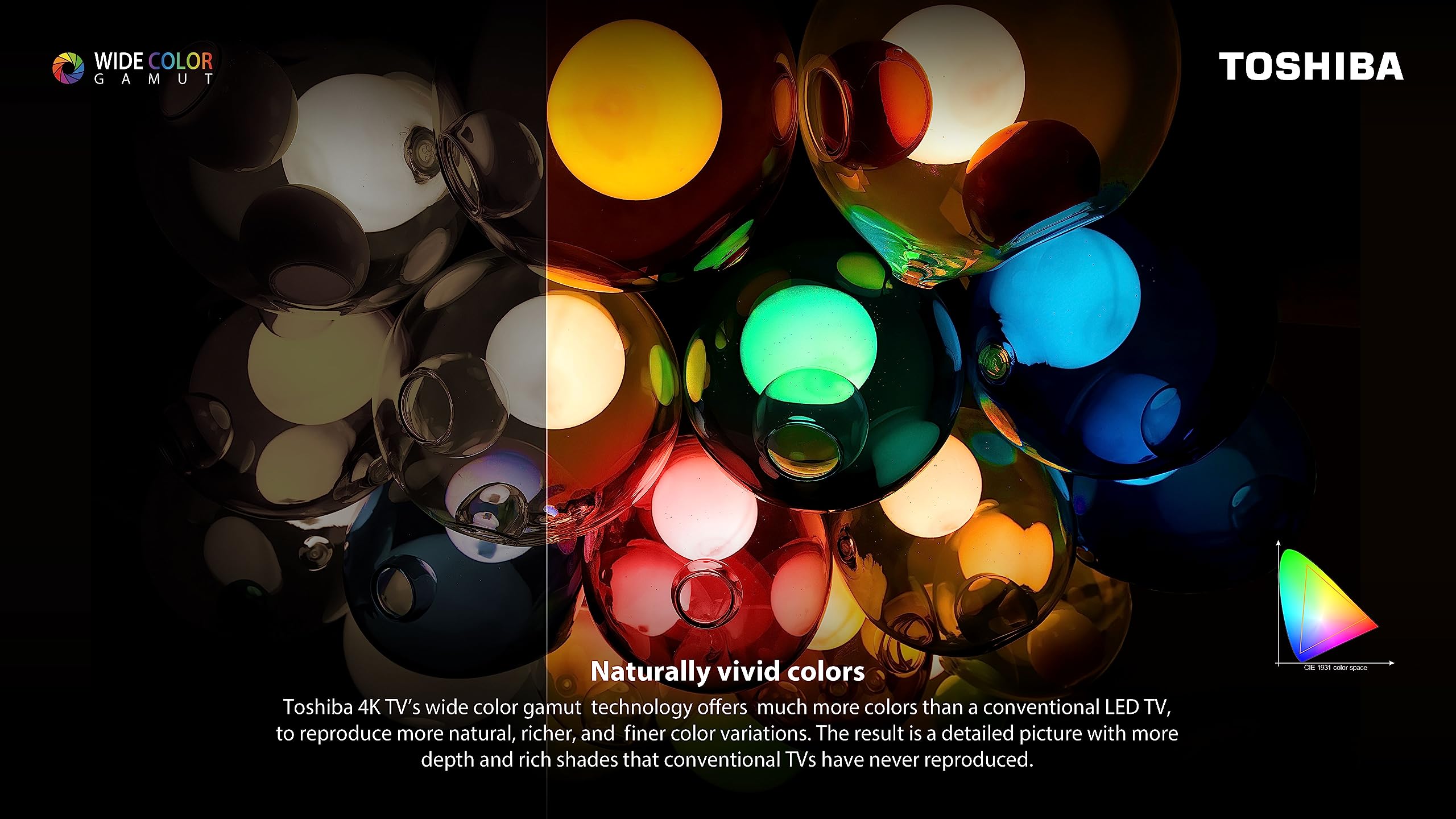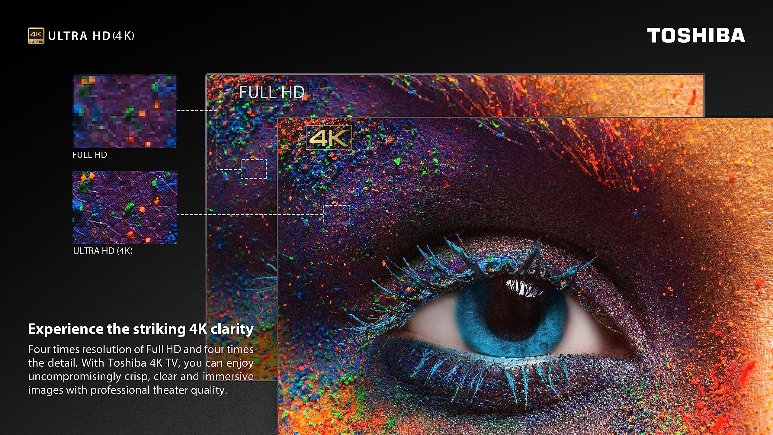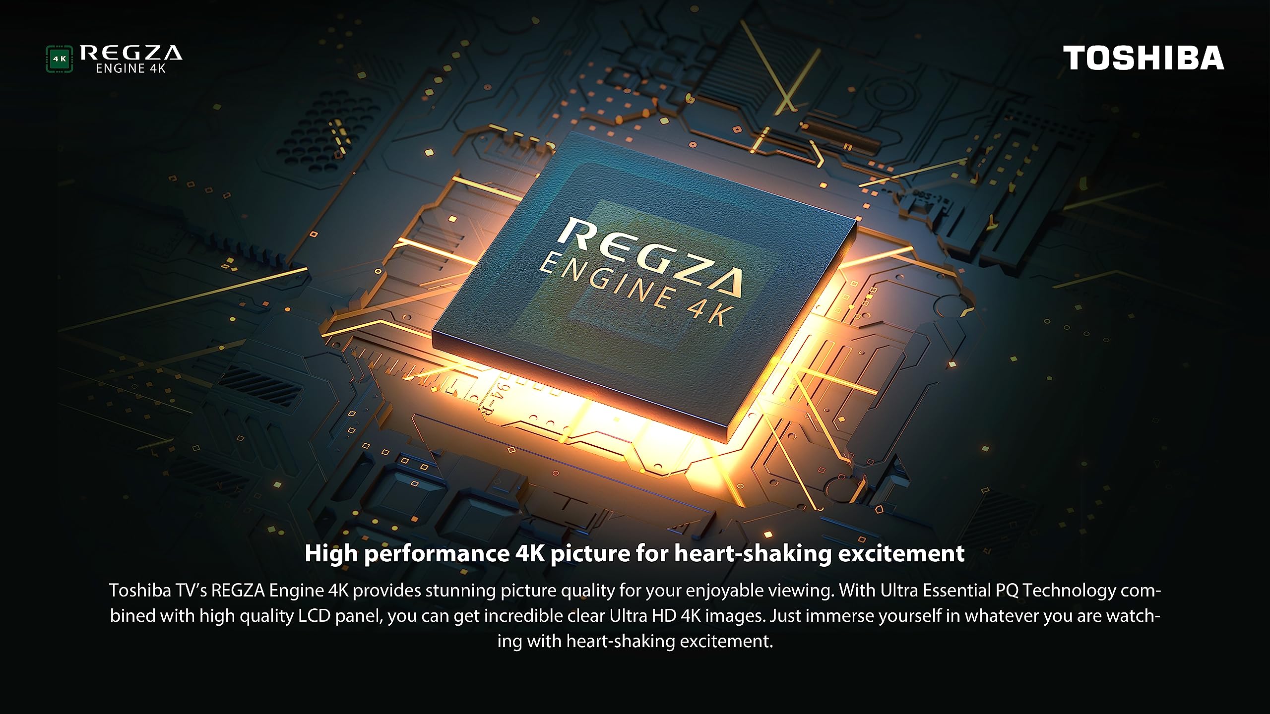 Toshiba's C350 series sets up a stunning, heart-shaking, smart world for your relaxing viewing experience, thanks to the newly developed high performance picture engine -REGZA Engine 4K. True-to-life images jump off the screen with amazing 4K Ultra HD resolution, ultimate beauty of details, and original natural color. REGZA Power Audio is the newly developed audio system for Toshiba TVs. Its powerful yet clear and crisp sound directly reaches your soul to enhance the reality for your fantastic viewing experience. With upscaling to incredible clarity and combining with Smart TV OS (Fire TV, android TV and Vidda TV), putting you at the center of unlimited entertainment through tens of thousands of channels, apps, just access all your favorite content from your home screen. Designed with the philosophy of "Japan Beauty", Toshiba's C350 series harmonizes with your living space, to deliver more joy of living.