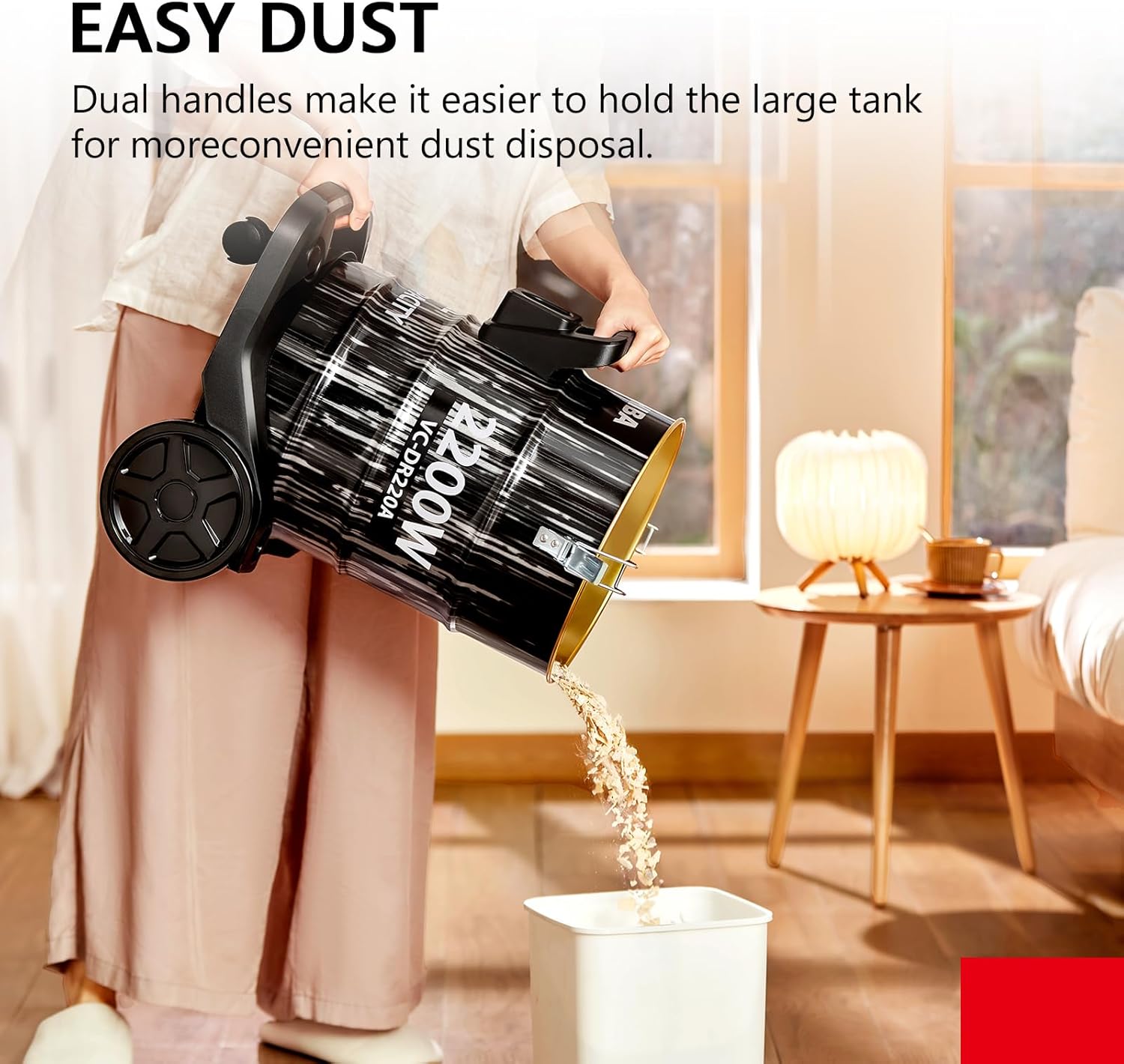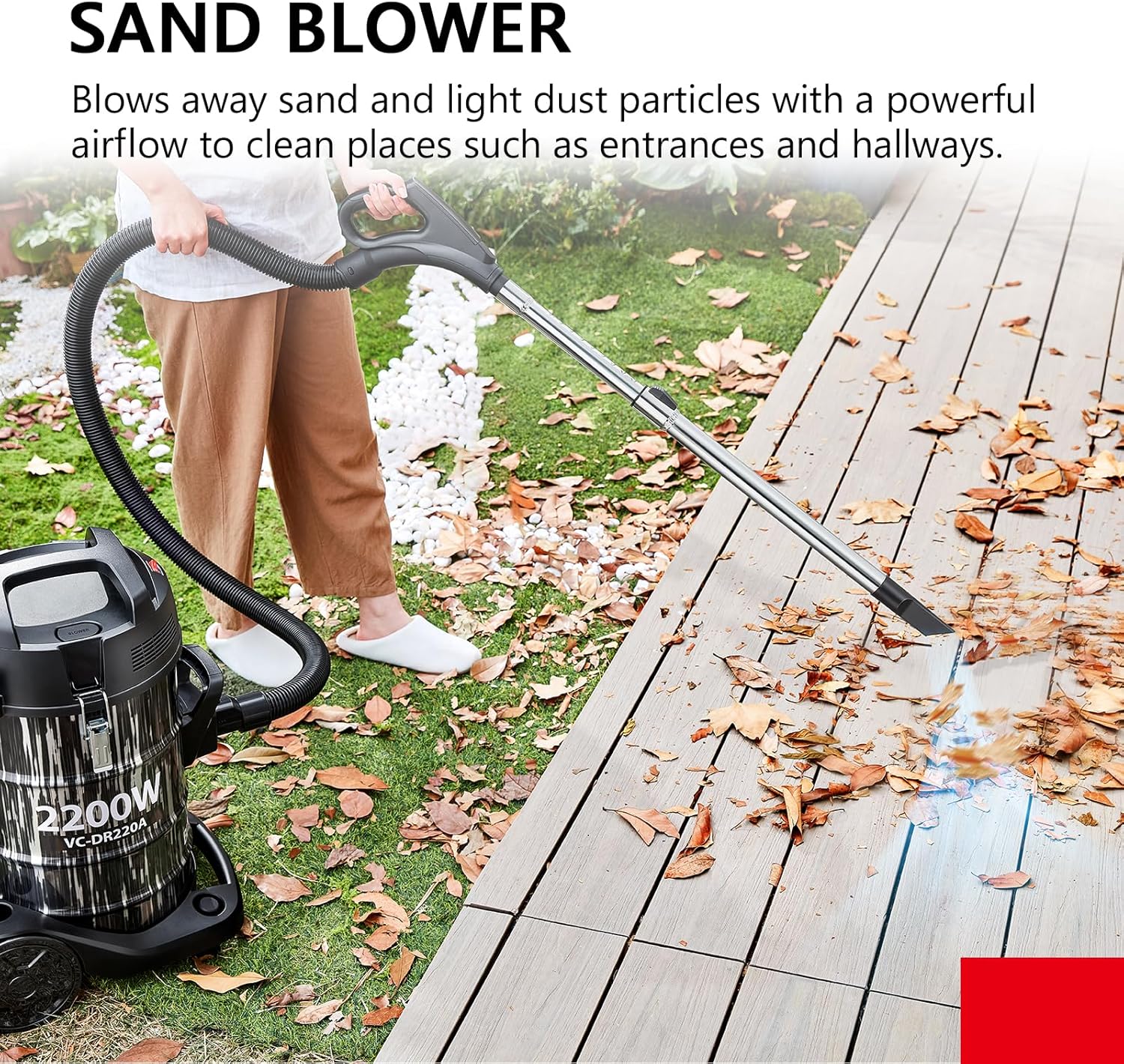 Toshiba Drum Type Vacuum Cleaner, 22000Pa Suction 2200 Watts 22 Liters Push Handle & Big Wheels Blowing Function, Ideal for Home & Car Interior Cleaning, Grey/Black, VC-DR220A, 1-Year Warranty